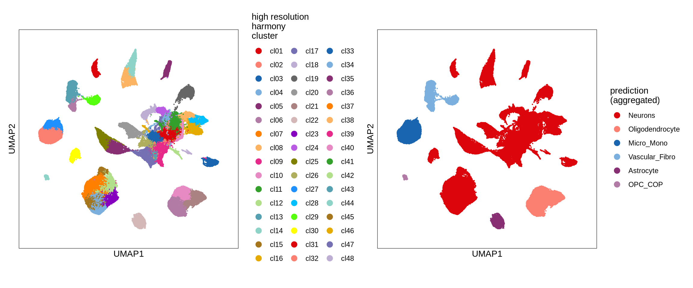 guesses_sel[, .(cell_id, cluster = prediction)], "prediction\n(aggregated)")